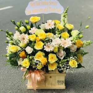 Tặng kèm phụ kiện trang trí (thiệp chúc mừng, băng rôn, chậu hoa,...)